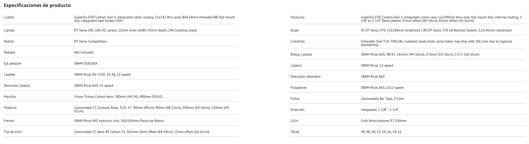 - Cuadro y horquilla SuperSix EVO de carbono, ligero y de bajo coeficiente aerodinámico: la combinación ideal entre velocidad, respuesta y comodidad.
